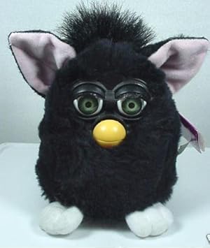 Furby gets a spot right next to the monkey doll Kondo gave him for Christmas.]